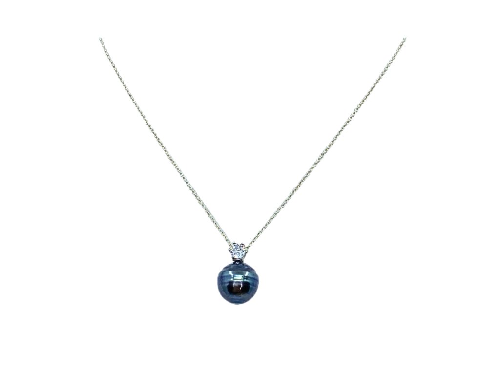 Objevte kouzlo jižního Pacifiku ukryté v jediné perle. Tento elegantní náhrdelník je osazen vzácnou pravou tahitskou perlou, která se rodí v lagunách Francouzské Polynésie. Každá perla je originál — svým barevným spektrem se pohybuje od kovově šedé až po temně zelenou s duhovými odlesky.