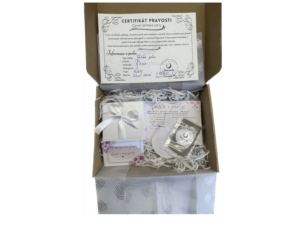 Perlový šperk je doručen v dárkové krabičce na šperky s cestovním sáčkem a Tiare Pearls certifikátem pravosti perel.