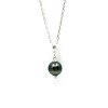 Řetízek s přívěškem tahitské perly polo kulatého tvaru o velikosti 9,8 mm. Perla má krásnou sytě zelenou barvu. Tahitská perla je mezi všemi perlami velmi exkluzivní a proto je šperk vhodný pro každou příležitost. Tento řetízek s přívěškem je velmi elegantní a vhodný pro každou moderní ženu a dívku.