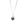 Krásný přívěsek s pravou tahitskou perlou. Perla má polo kulatý tvar a je zelené barvy. Perla má vysoký lesk a na světle se projevují i lehké odstíny jiných barev. Řetízek s přívěškem tahitské perly je vhodný ke každé příležitosti. Kombinace stříbra a černé tahitské perly vytváří nádherný šperk.